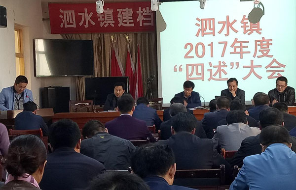 为进一步加强对基层党政班子成员、村、镇属单位主要负责人的监督管理,增强自觉履行党风廉政建设责任制和廉洁自律的意识,根据古浪县纪委要求,2017年4月17日下午,泗水镇在镇机关四楼会议室组织召开了2017年度领导干部“四述”大会,领导班子全体成员,镇机关全体干部、村干部、镇属单位负责人、部分“两代表一委员”约91人参加了会议。会议由镇党委副书记、镇长朱培龙主持。